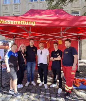 Am vergangenen Samstag fand zum zweiten Mal nach 2022 das sog. "Festival rund um Sicherheit und Prävention" der Stadt Esslingen statt. Gemeinsam mit der befreundeten DLRG Ortsgruppe Berkheim war unsere Ortsgruppe Esslingen mit einem Rettungsboot, einem Wasserrettungsfahrzeug und einem großen Infostand in der Ritterstraße vertreten.